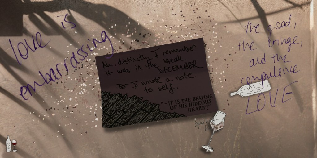 no matter how much you grow up, no matter how much you think you evolved and matured, love will always make you someone cringe. we need to make peace with that. that feeling of liking someone at 17 will haunt you forever. it will shift shapes but it will always find a new form. you will say that you are done for good, it will begin again on a random friday.